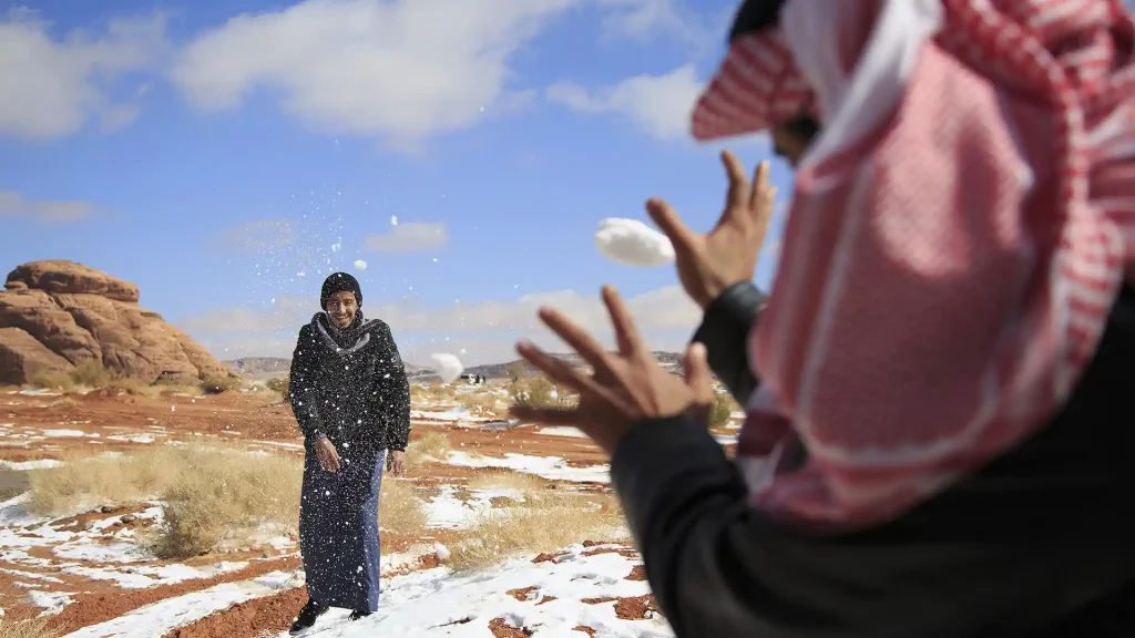 The scenes from Saudi Arabia surprised many across the region, as snowfall is uncommon in most Middle Eastern countries. However, meteorological authorities there confirmed that the conditions were extraordinary rather than impossible. According to Saudi Arabia’s National Centre for Meteorology, the snowfall was the result of a significant and sudden drop in temperatures, with readings in some areas plunging below freezing. This sharp cold spell coincided with moisture-rich thunderclouds, creating the right combination for snow to form instead of rain. Due to the resulting icy surfaces and reduced visibility, officials issued weather alerts and advised drivers to exercise caution on roads affected by slippery conditions.