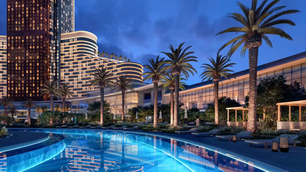 Another defining feature of Wynn Al Marjan Island is its integration with the natural environment. The resort’s design respects the unique coastal and mountainous context of Ras Al Khaimah, using sightlines, landscaping, and water features to frame key vistas and connect guests to the surrounding landscape. Outdoor spaces are designed to offer both expansive views and intimate retreats, balancing openness with privacy.